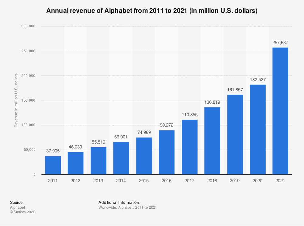 Évolution des revenus d’Alphabet de 2011 à 2021, Statista