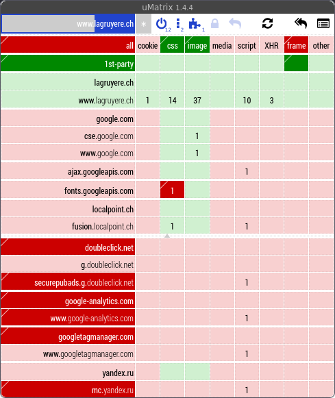 uMatrix sur le site de La Gruyère