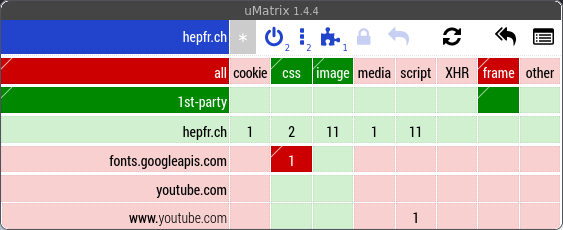 uMatrix sur le site de la HEP Fribourg
