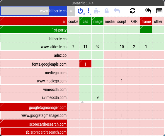 uMatrix sur le site de La Liberté