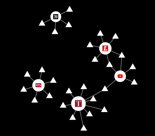 Exemple d’interconnections entre les différents sites, navigateur avec un bloqueur de pub et un intermédiaire de ressources