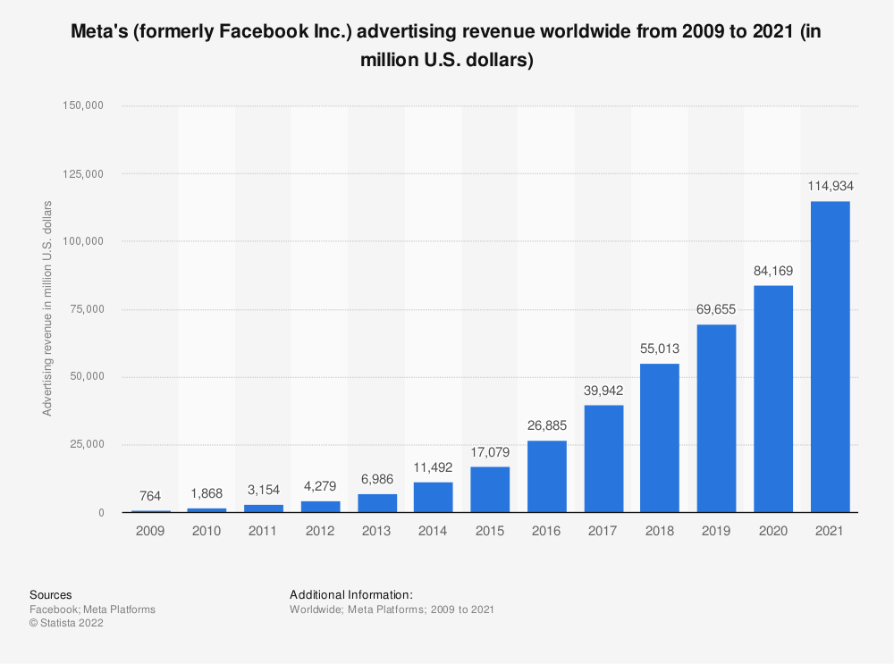 Évolution des revenus publicitaires de Meta de 2009 à 2021, Statista