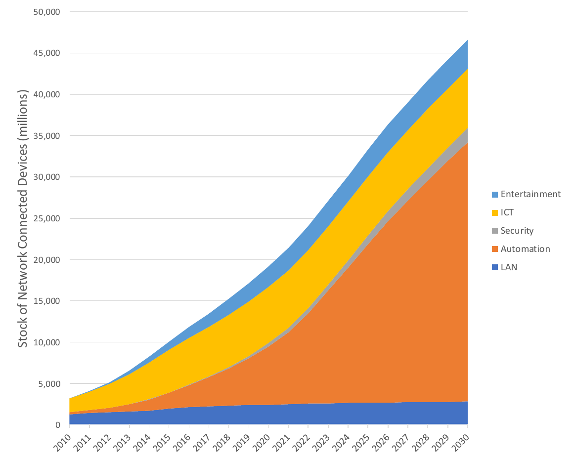 Évolution du nombre d’objets IoT, EDNA