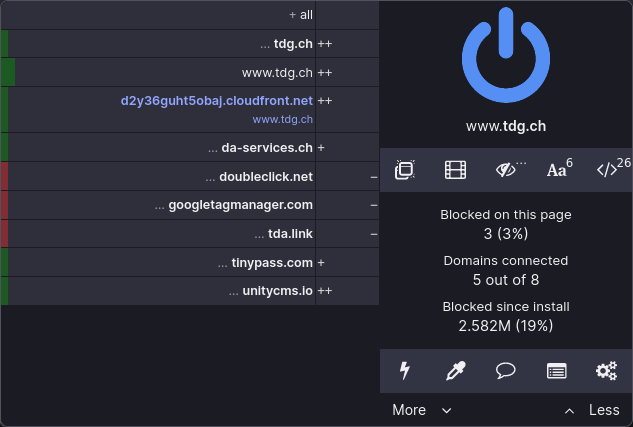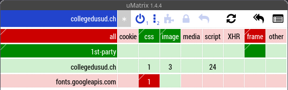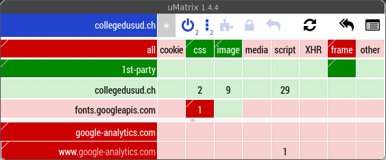 Exemple d’interconnections entre les différents sites, navigateur avec un bloqueur de pub et un intermédiaire de ressources