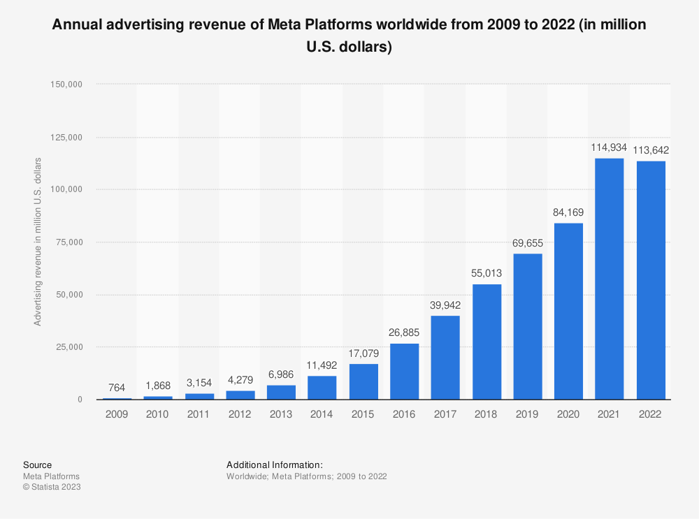 Évolution des revenus publicitaires de Meta de 2009 à 2022, Statista